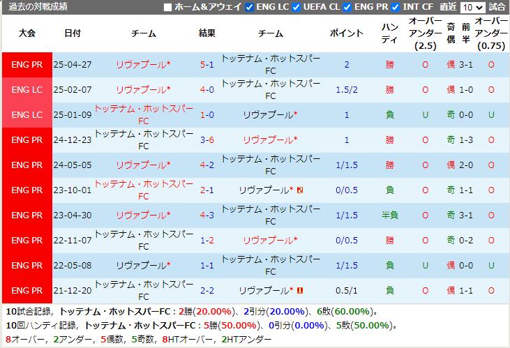 この試合では、リヴァプールはハンディキャップ-0.50で有利と見込まれており、非常に有利な状況にあります。