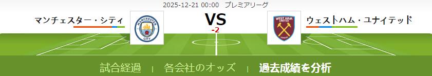 マンチェスター・シティ VS ウェストハム・ユナイテッド 試合予想