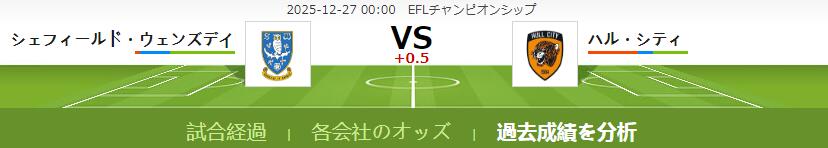 シェフィールド・ウェンズデイ VS ハル・シティ 試合予想