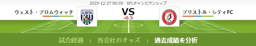 ウェスト・ブロムウィッチ VS ブリストル・シティFC 試合予想