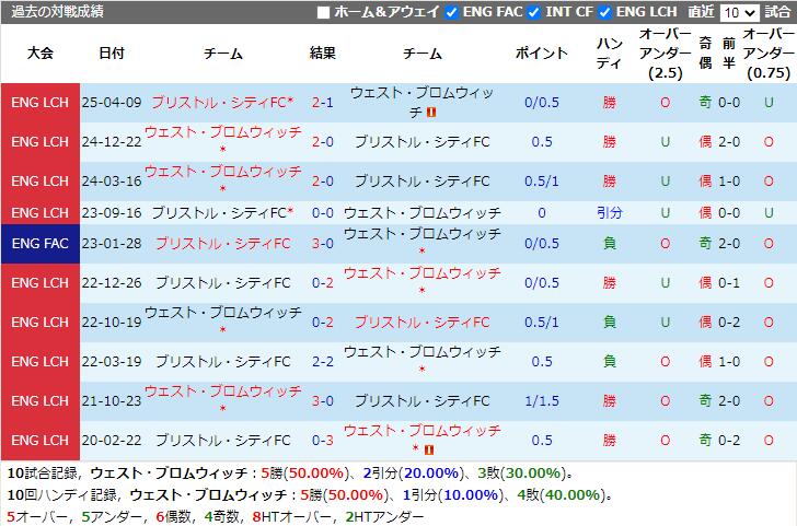 両チームの対戦成績から判断すると、ウェスト・ブロムウィッチがある程度有利です。