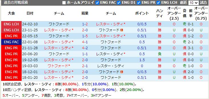 レスター・シティFCは今シーズンの全体的なパフォーマンスは期待を下回っていますが、過去の対戦成績から見て、絶対的な心理的優位性を持っています。さらに、ワトフォードFCのアウェイ戦績の悪さと、レスター・シティFCのより強力な攻撃力を考慮すると、ブックメーカーはホームチームに有利な立場にあります。