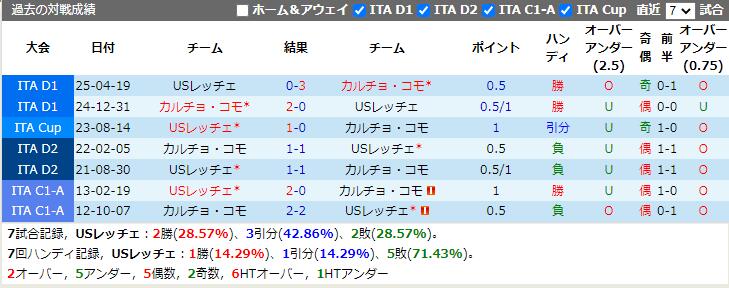USレッチェ VS カルチョ・コモ 予想、対戦成績、最新情報2025/12/27