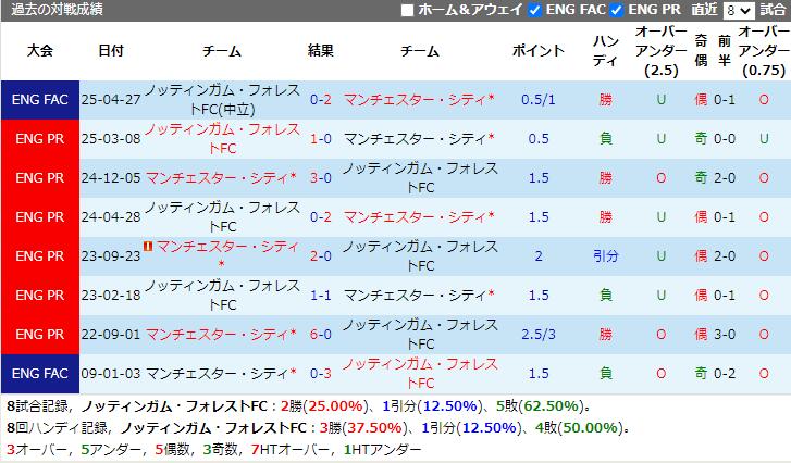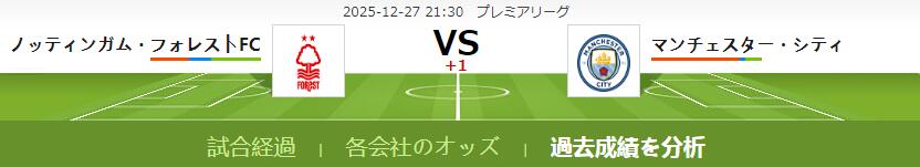 ノッティンガム・フォレストFC VS マンチェスター・シティ 試合予想