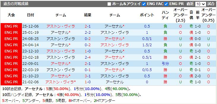両チームの対戦成績から判断すると、アストン・ヴィラFCが明らかに優位に立っています。