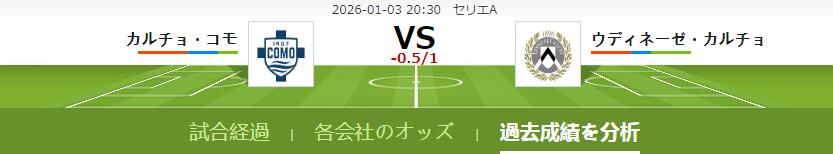 カルチョ・コモ VS ウディネーゼ・カルチョ 試合予想