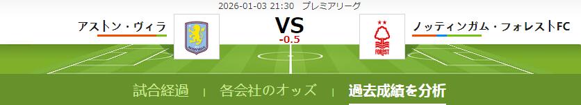 アストン・ヴィラ VS ノッティンガム・フォレストFC 試合予想
