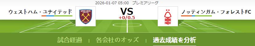 - 7 ウェストハム・ユナイテッド VS ノッティンガム・フォレストFC 予想、対戦成績、最新情報2025/1/7