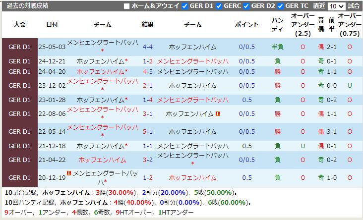 試合予想:ホッフェンハイム-0.5