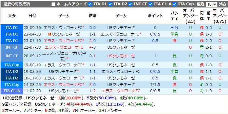 USクレモネーゼ VS エラス・ヴェローナFC 試合予想