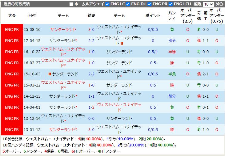 ウェストハム・ユナイテッド VS サンダーランド 試合予想