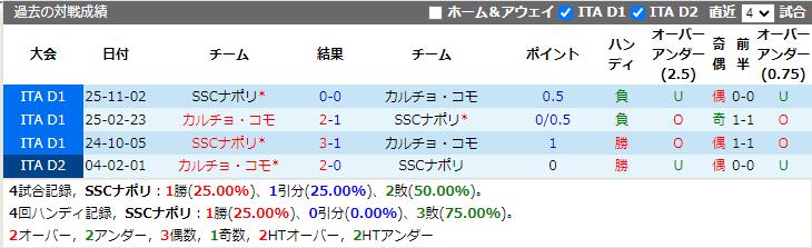 ホームチームのラインは-0.25で、SSCナポリにとってあまり有利ではありません。