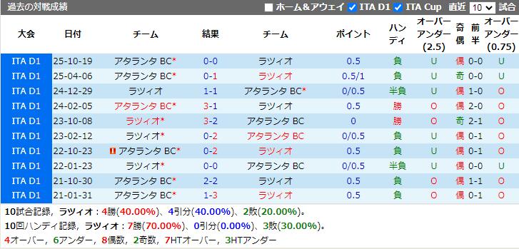 ラツィオ VS アタランタ BC 試合予想