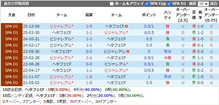 試合予想:ヘタフェCF +0.25