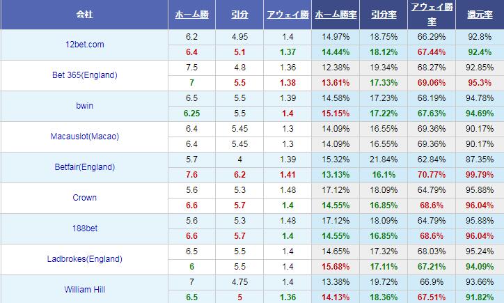 アウェイチームのオッズも-1.5です。