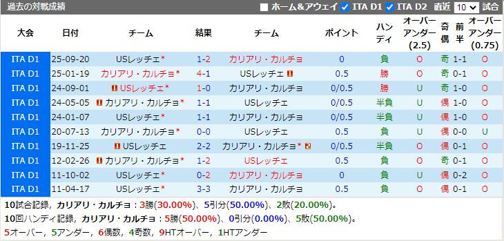 カリアリ・カルチョ VS USレッチェ 試合予想