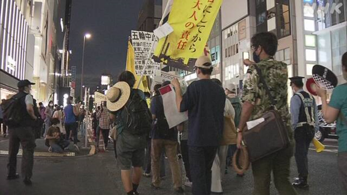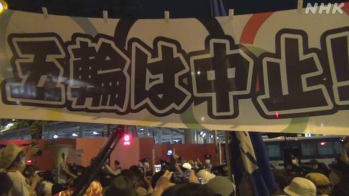 「五輪より命」とか「五輪中止まだ間に合います」などと書かれた横断幕や看板を掲げながらシュプレヒコールをあげ、大会の中止を訴えていました。