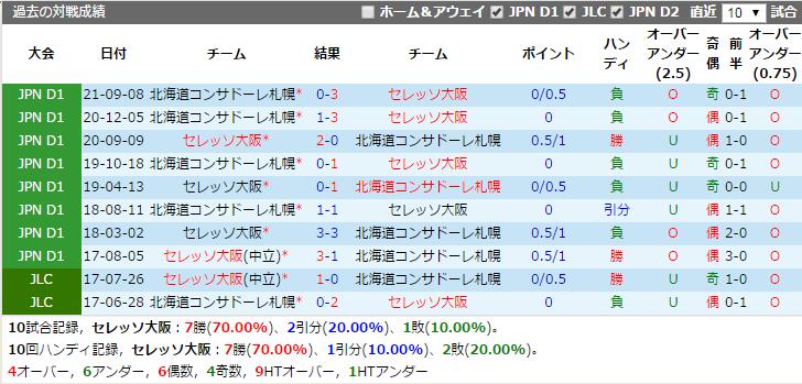 セレッソ大阪はリーグ前戦アウエーで3-0で札幌に完勝し、各試合2連勝と好調だ。今節ホームに戻って北海道コンサドーレ札幌を迎え、前の勝利で勢いに乗れると思う。北海道コンサドーレ札幌は最近連続黒星となり、Jリーグカップで東京FCに敗れ、敗退が決まった。リーグに戻って不調が続く。今回アジアンハンデキャップも参考し、セレッソ大阪がまた勝利を挙げると思う。